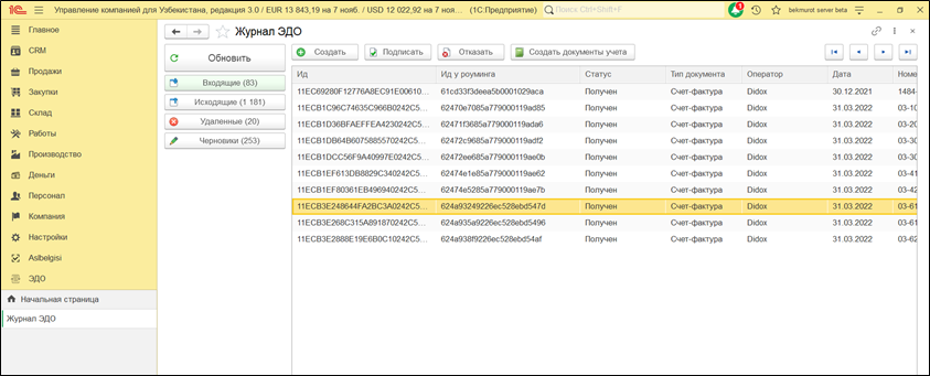 Журнал ЭДО;