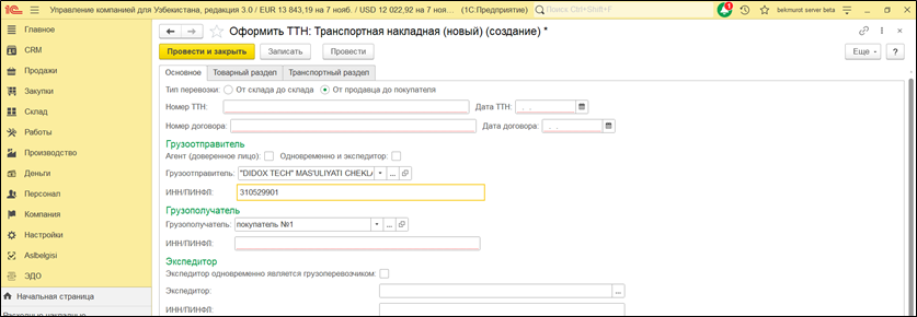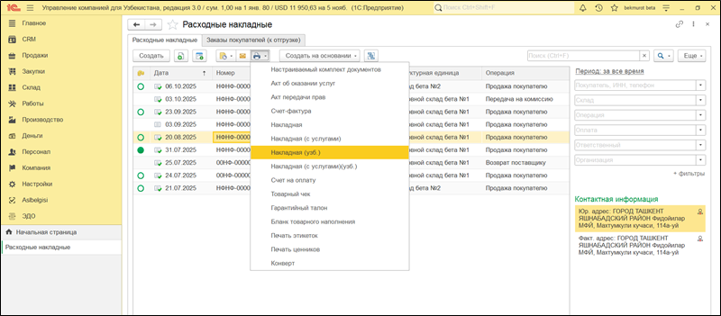В системе имеется возможность формировать печатные формы на узбекском языке по таким документам, как:
