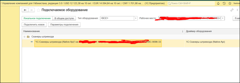 Конфигурация поддерживает взаимодействие со следующими категориями торгового оборудования: