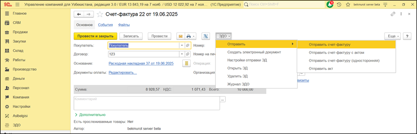 отправить в ЭДО электронный счет-фактуру;